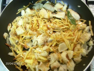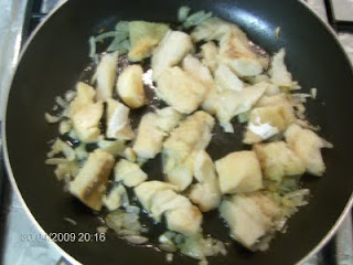 4. Adicione o bacalhau ao refogado. Deixe saltear cerca de 2/3 minutos mexendo bem para que a cebola não queime:
