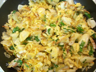 7. Envolva o bacalhau nos ovos e mexa até estarem bem passados.