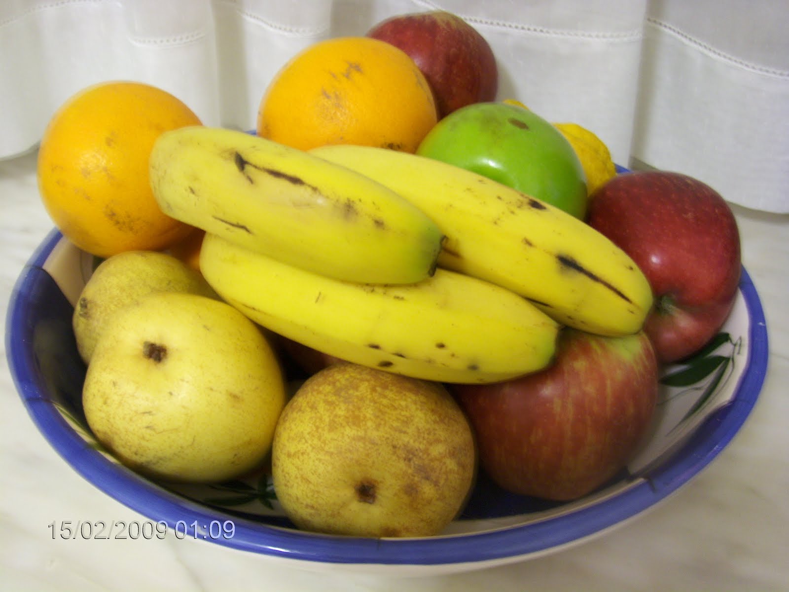 ~ Vários tipos de frutas a gosto: maça, pera, banana, pessego, manga, morangos, uvas, melão, etc.